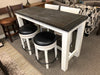 This 3 piece set includes the Counter Height Table, and 2 Swivel Counter Stools, all from the Carriage House Collection, made from Mahogany and Mindi solids and veneers with hand applied glazed & wire brushed European Cottage finish.