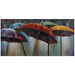 This amazing composition depicts a group of vividly coloured umbrellas over a background that is a mélange of shades belonging to a stormy cityscape palette. The greys mingle with both warm and cool tones as they pour down the canvas like rain drops would. This work of art is hand painted acrylics on a gallery wrapped canvas and signed by the artist, ensuring each piece has some subtle differences & making it distinctly unique to each owner. The high quality canvas wraps tightly around a sturdy wooden frame that will last for years to come.