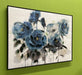 These vibrant petals use a combination of blues, greys, and blacks to bring elegant wall decor perfect for any home or office. Heavily textured hand-painted accents on stretched canvas add depth and bring the flowers to life. Accented by simple black frame which creates a gallery inspired look. Hanging wire is attached in the back.